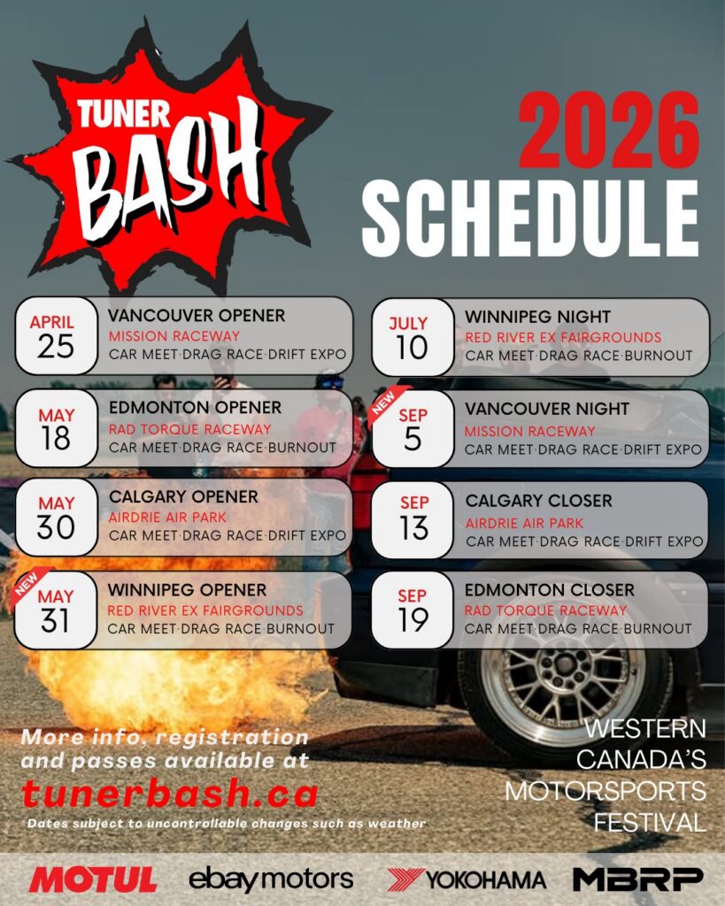 Tunerbash is back and bigger than ever! Join your fellow tuner-enthusiasts for a day of drag racing, drifting, and more!
