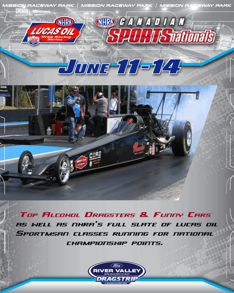 We’re ecstatic to announce that Mission Raceway Park will be home to the first-ever Canadian SPORTSnationals event, taking place June 11-12 before a divisional event on June 13-14!